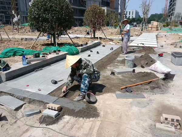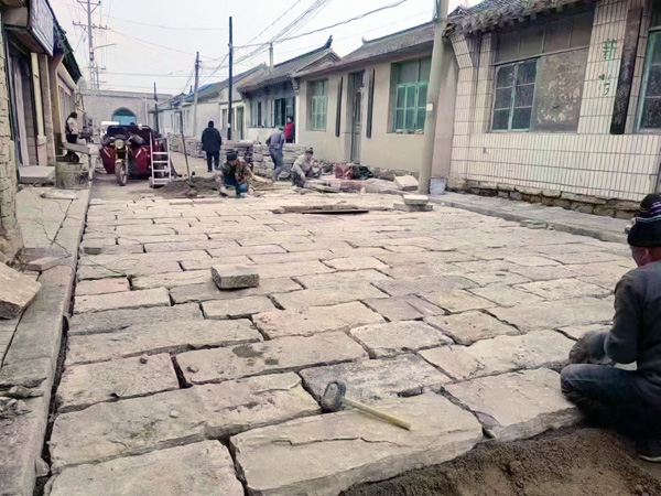 荔枝面青石板铺装现场